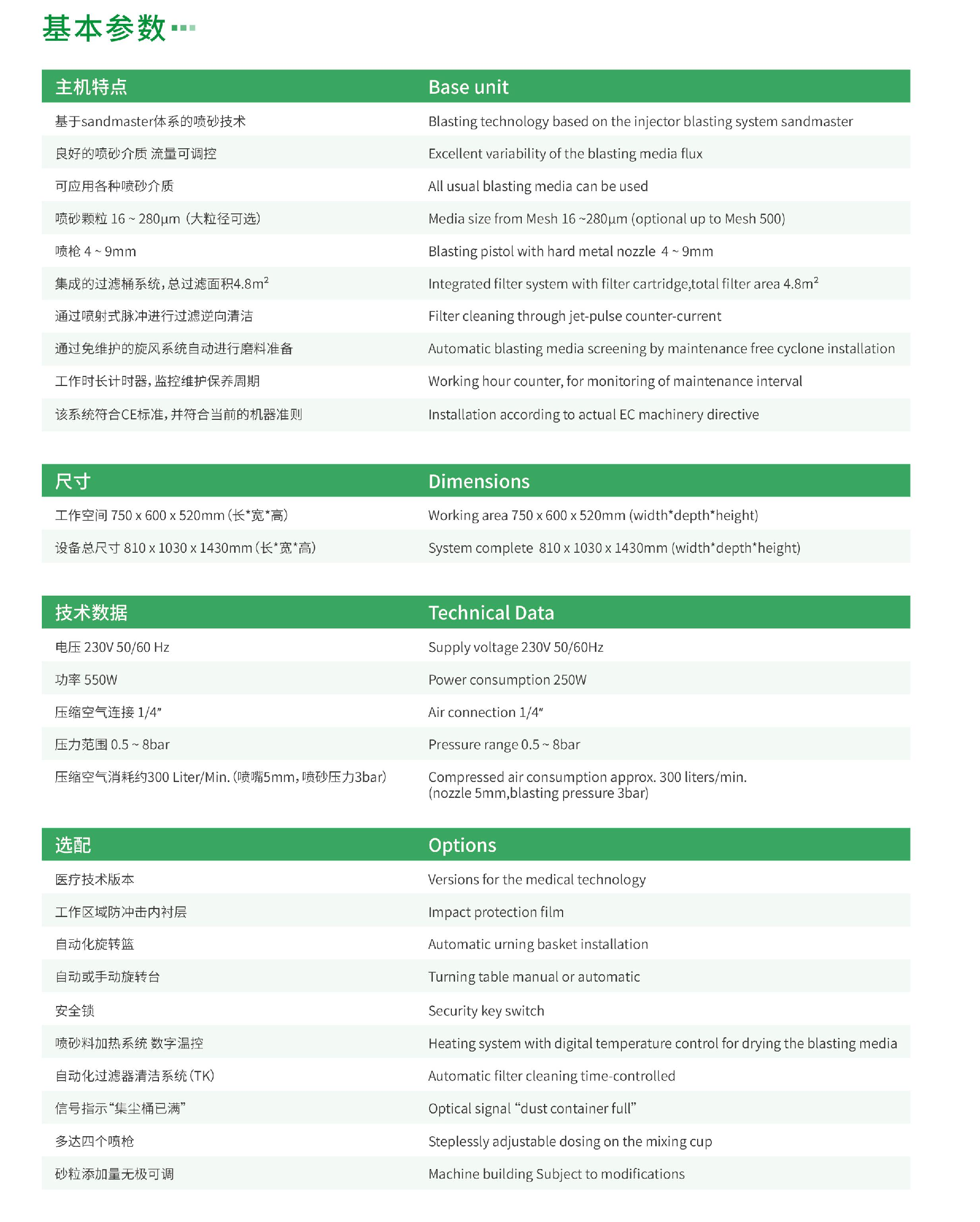 • 0.2--0.5bar 压力匀速喷砂;